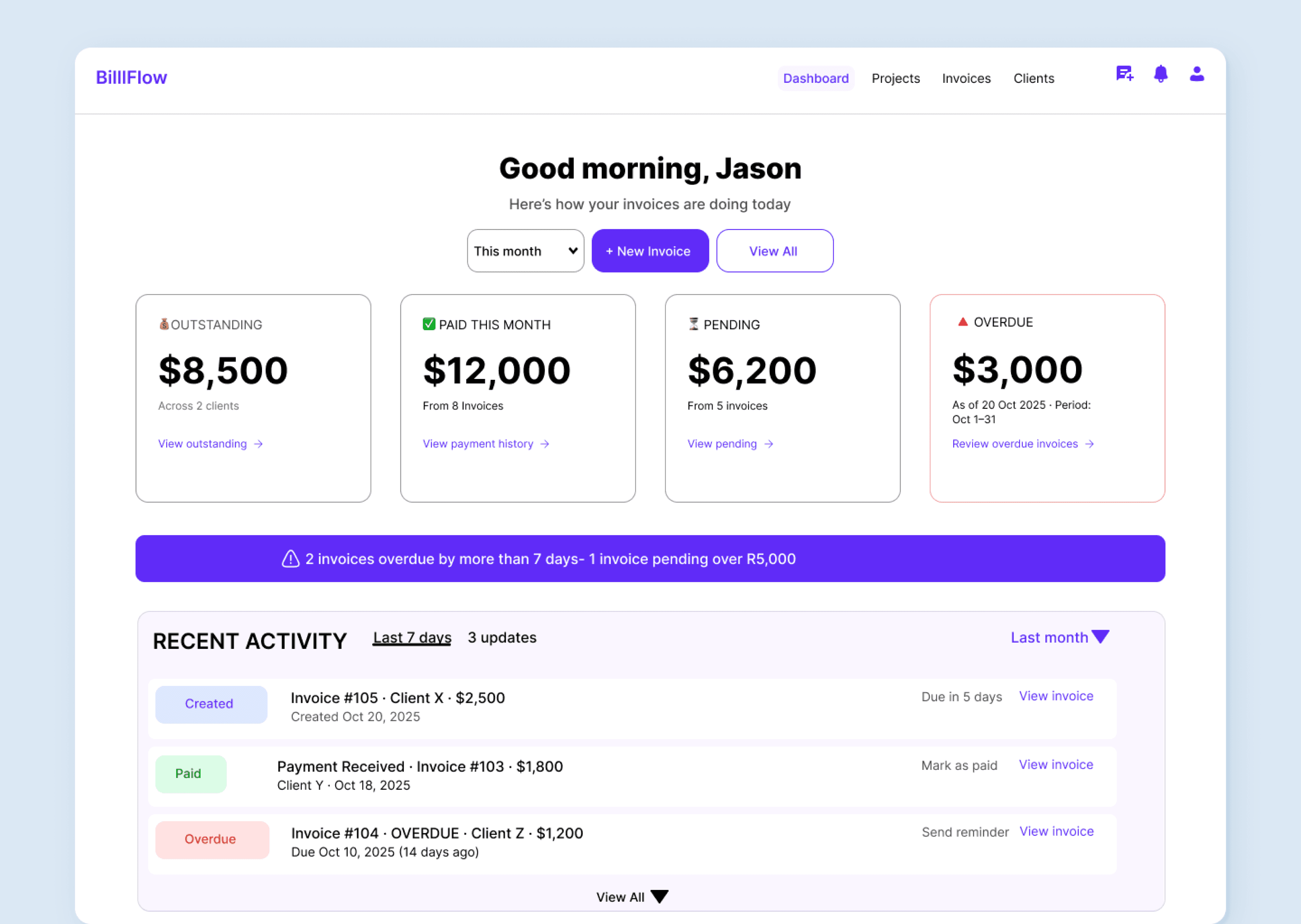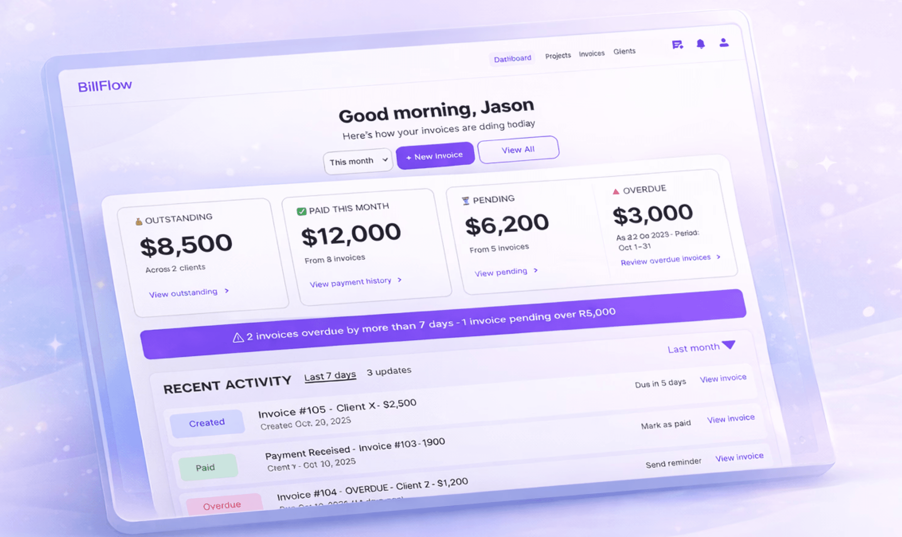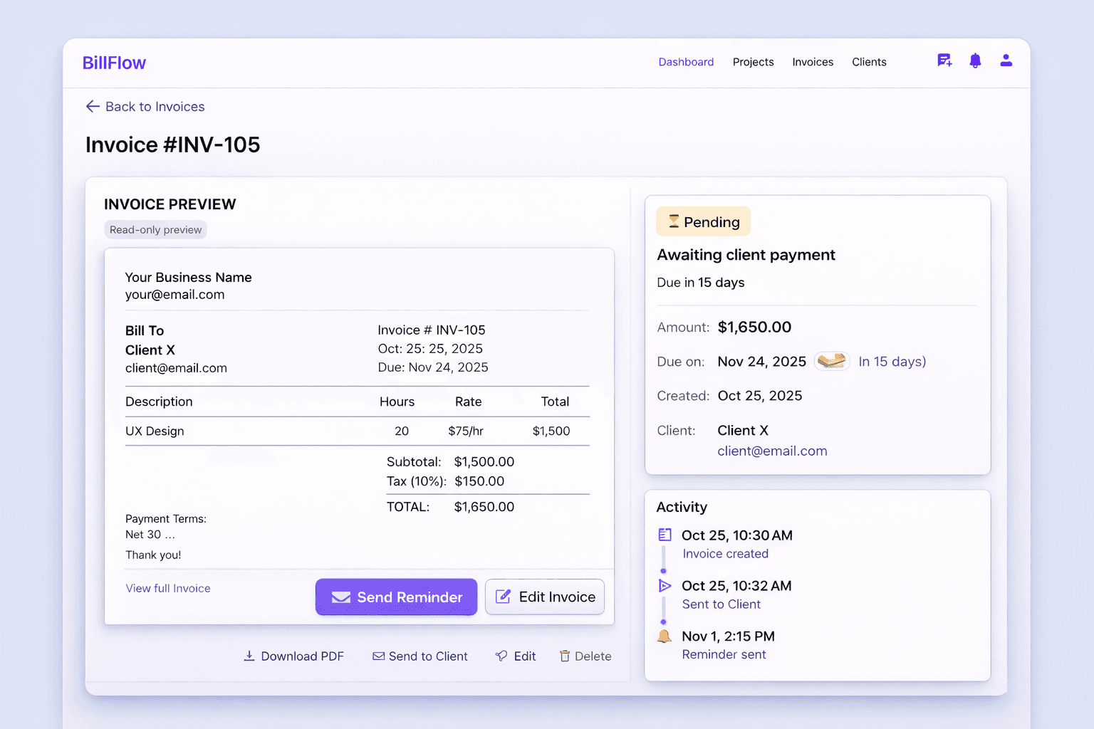 BillFlow supports unlimited invoices per project—solving the #1 pain point from
